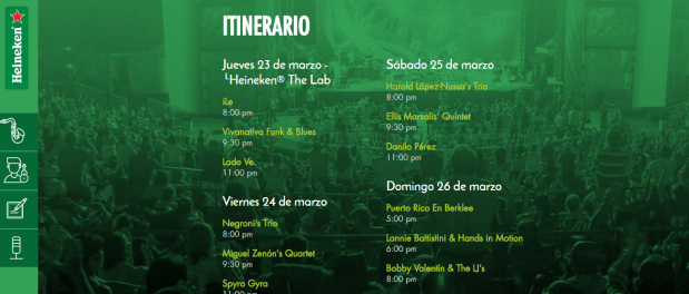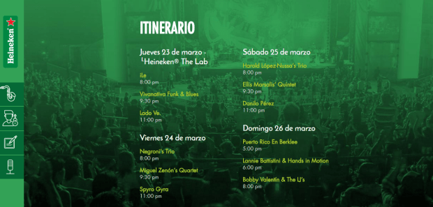 Heineken Jazz Fest 2017 Itinerario Publicado en marzo 23, 2017 por La Rabieta en CULTURA, ESCENARIOS, EVENTOS, INTERNACIONALES, MÚSICA, Noticias, PORTADA // 0 Comentarios Adjunto el itinerario del Heineken Jazz Fest para este fin de semana desde el 23 al 26 de marzo de 2017. Comparte esto: Haz clic para compartir en X (Se abre en una ventana nueva) X Haz clic para compartir en Facebook (Se abre en una ventana nueva) Facebook Me gusta Cargando... Relacionado