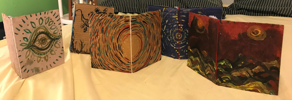 El poemario “Ataque de risa / Ataque de llanto” esta ilustrado por la autora. Ella pinta el soporte de cartón siguiendo sus impulsos artísticos. Desde el 2012 al 2018 ha producido y distribuído sobre 400 ejemplares. Ninguna portada es igual a otra. Su segundo libro “Medidas a ojo”, también artesanal, va por su cuarta edición y es completamente hecho a mano.